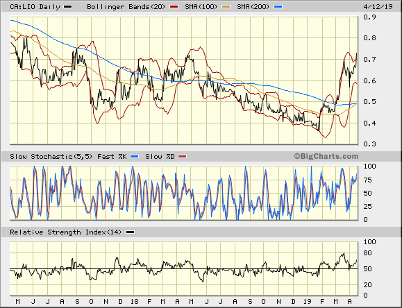 Der Kursauftrieb von LIO ist tatsächlich beeindruckend: Vom Jahrestief 0,37 C$ im Januar 2019 hat sich der Kurs auf 0,73 C$, + 9 % am SK, nahezu verdoppelt auf ein 2 Jahreshoch. ![]()