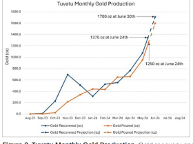 Die Goldproduktion bei Tuvatu ist seit dem Abschluss der Inbetriebnahme der Mühle im Dezember 2023/Januar 2024 stetig gestiegen. Im Juni kam es nach der Aufnahme der maschinellen Produktion zu einem sprunghaften Anstieg der Produktion. Die gesamte Goldgewinnung für den Monat Juni bis einschließlich 24. Juni beläuft sich auf etwa 1370 Unzen Gold, wobei für diesen Monat eine Goldgewinnung von etwa 1700 Unzen prognostiziert wird....