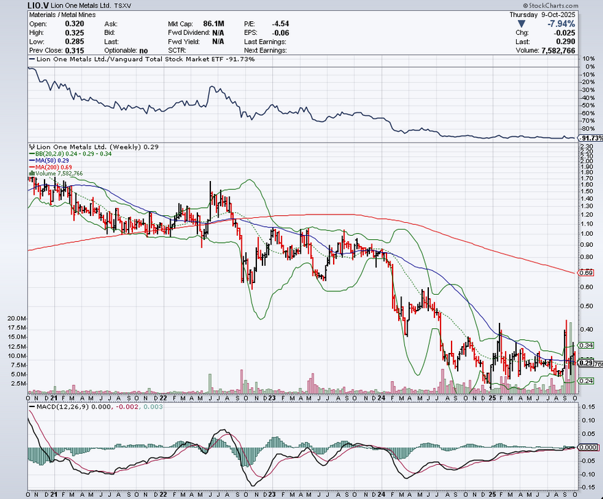 Umsatz (Revenue) nicht gefunden C$ 16,300,821 – gemeldet für Q2. 25 (Lion One Metals Limited) keine zuverlässige Zahl für Q3
