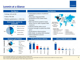 3. größter PGM Produzent Südafrikas nach Amplats und Impala.