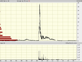Hat zudem eine kuriose Geschichte, sie suchten 2008 nach Gold in Kanada und fanden ein riesiges Kohlefeld. Damals schoss der Kurs dann (aufgrund des parallelen Kohlehypes weltweit) in absurde Höhen. Deshalb kann man den Kurs auch immer noch nicht sinnvoll komplett plotten (ich machs unten dennoch mal, ist halt was zum Lachen aus dem Kuriositätenkabinett.)