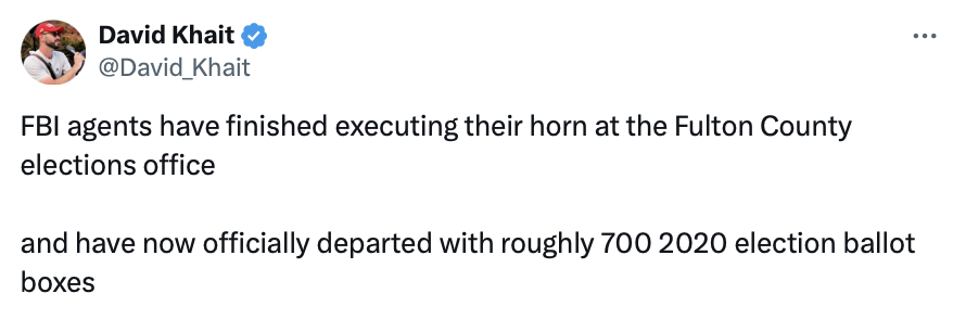 Uh oh 👀 The Trump FBI reportedly carried out a search at a Fulton County election hub, related to the fraud in the 2020 election. This was the county with…