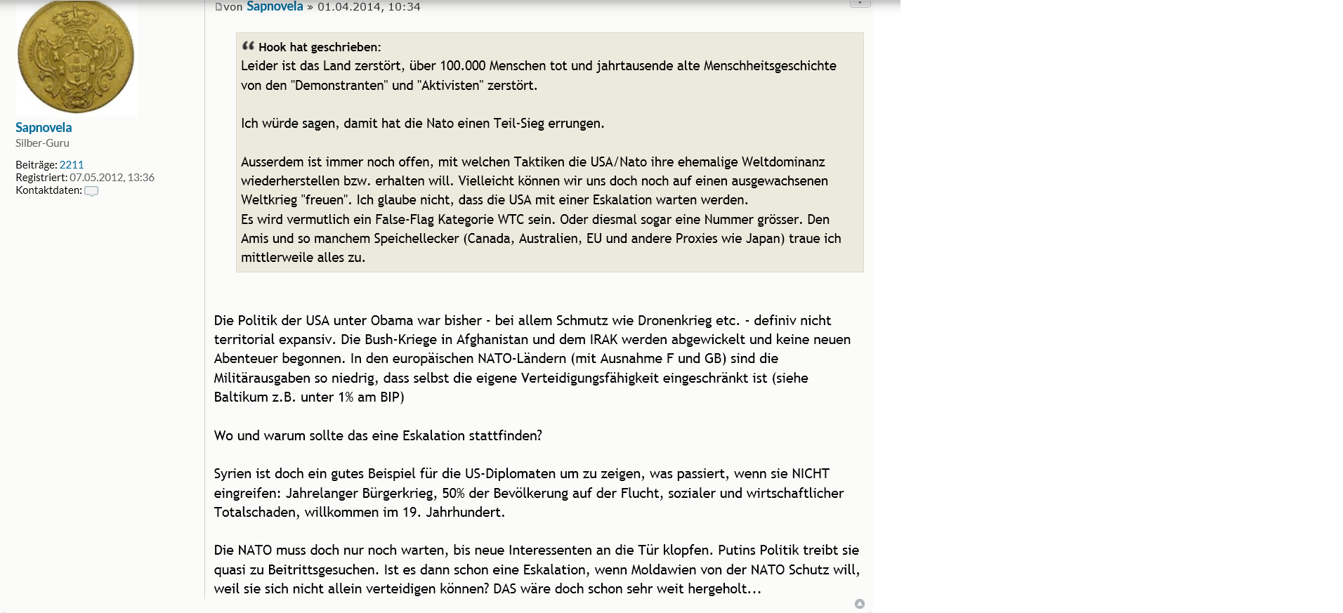 Drohnenkrieg von der Obama regierung hat dich damals nicht so gestört, halt bisl schmutzig aber ansonsten gar nicht expansiv