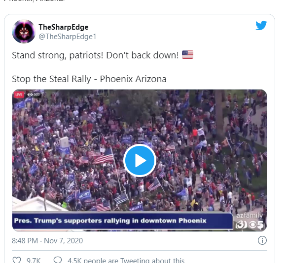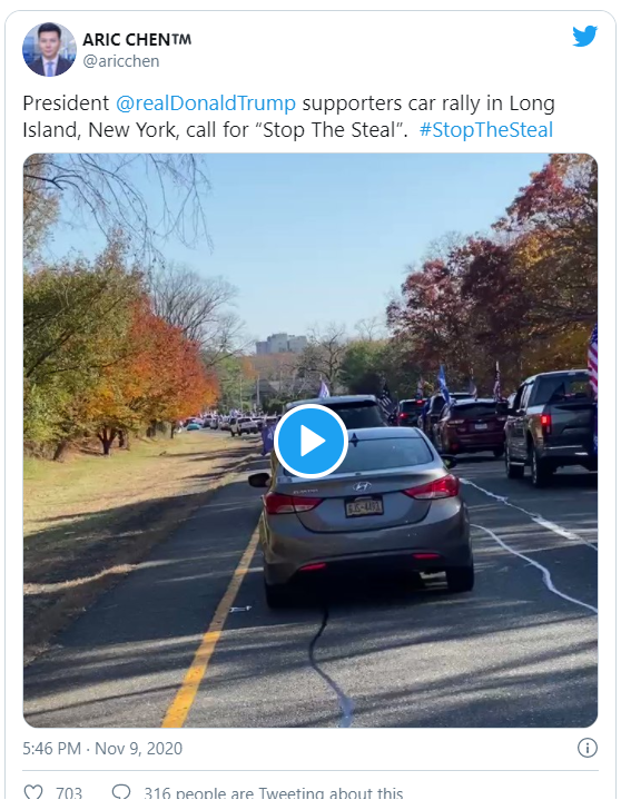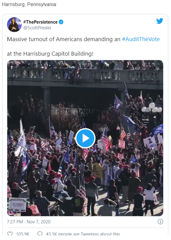 Ich ordne die StopTheSteal-Geschichte eher so ein, daß faule Eier in den eigenen Reihen ausfindig gemacht werden. Wenns nebenbei ein paar Maga-Kundgebungen gibt, ist das ein netter Nebeneffekt.
