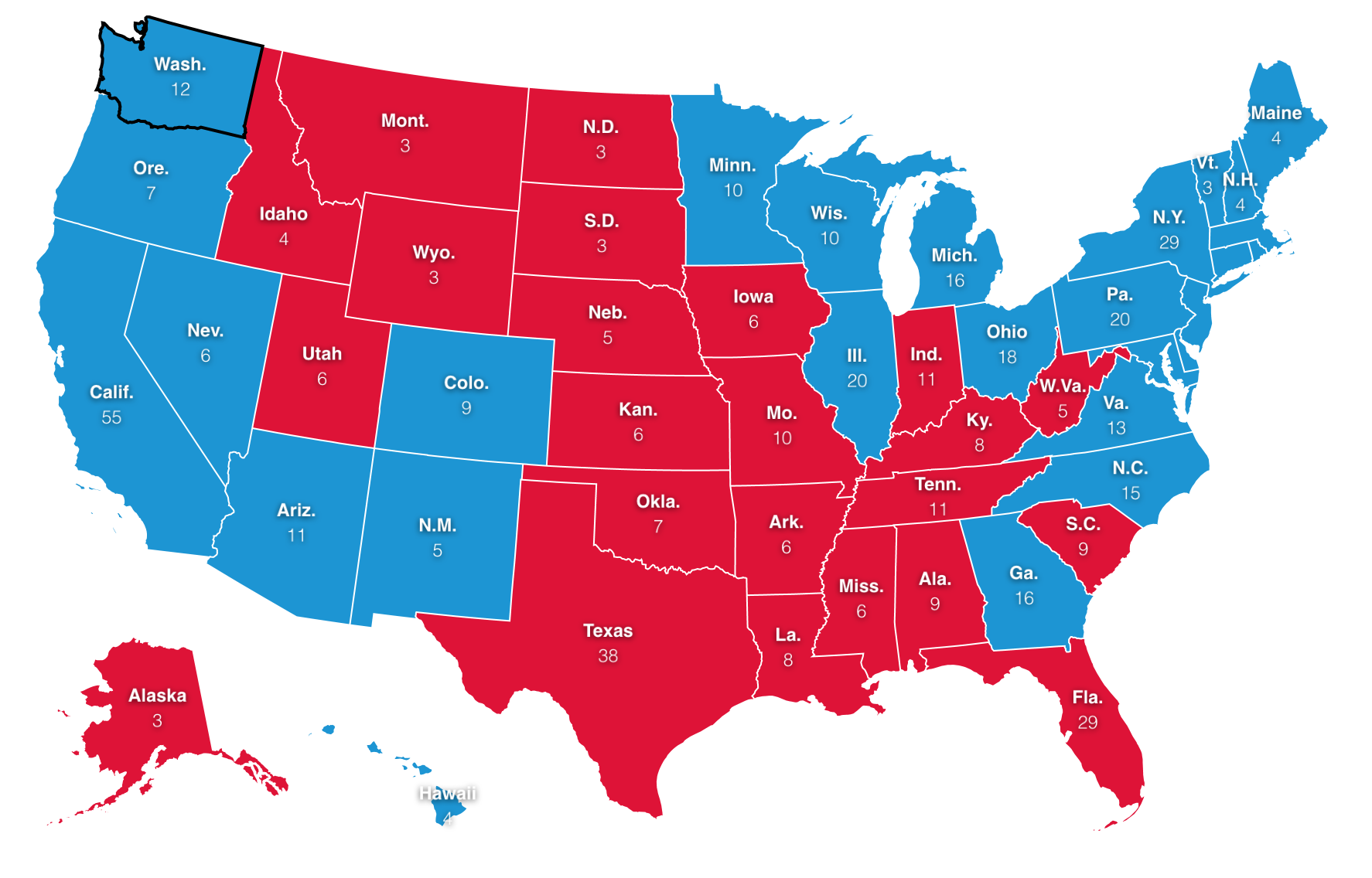 Weit gefehlt, es geht um ca. 0,5 Millionen Stimmmen. Kleine Tabelle: Staat, Biden, Trump, Differenz.