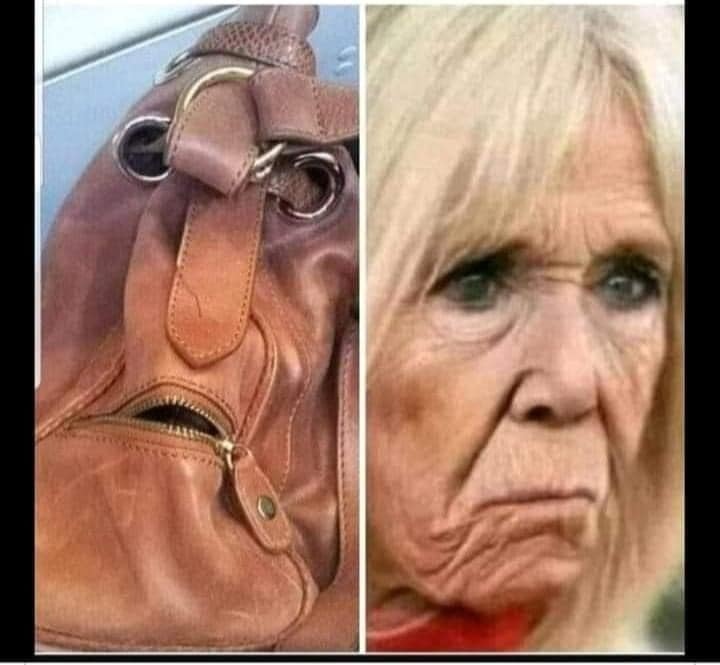 • irgendwie sieht die alte lederfresse wie die von frankreichs first lady aus. X/