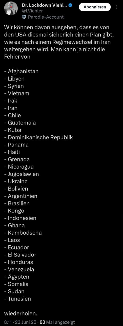 Bomben werfen ist definitiv kein Krieg. Ironie aus. Die Heuchelei wir immer unverschämter.
