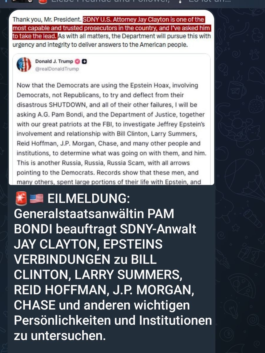 Welchen Einfluss hatte Jeffrey Epstein auf die US-Politik? Wer hatte ihn auf seiner Gehaltsliste? Epstein war ein Demokrat, der demokratische Kandidaten finanziell unterstützte. Er freundete sich mit jedem an, der Einfluss hatte, und nutzte dies zu seinem Vorteil. Niemand hat Jeffrey Epstein zum gewählten Kongressabgeordneten gewählt. Dieser Skandal ist eine nationale Schande, und die Beteiligten müssen strafrechtlich verfolgt werden." Zitat Ende