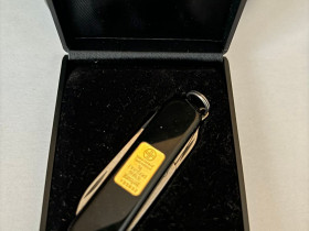 ich biete einen 1-Gramm-Barren UBS an, an dem noch ein schweizer Taschenmesser "hängt". Die Klinge hat eine Länge von 5cm und darf in der Öffentlichkeit getragen werden
