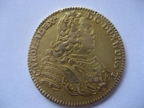 Biete einen Karolin von 1735 aus Württemberg. Die Echtheit wurde mehrfach bestätigt. Die Fotos stellen den Zustand detailgetreu dar, m.M. nach sehr schön. Durchmesser 25 mm, Gewicht 9,36 Gramm. Für 900 Euro inkl. DHL Paket abzugeben. RESERVIERT