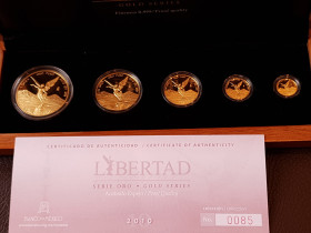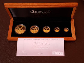 Libertad Gold Satz 1/20, 1/10, 1/4, 1/2 und 1 Unze 2010 PP in Holzschatulle und Überkarton, mit Zertifikat Nr 85, Auflage 500 Stück. EUR 2.300,-- -