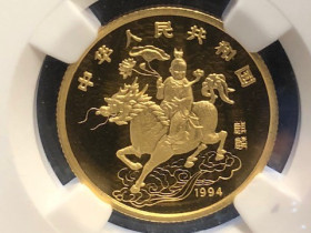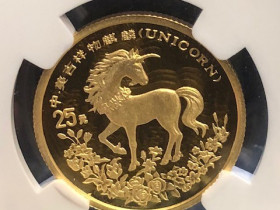 China: 1/4 Gold Unicorn aus 1994 NCG 69 zu glatt 500,-€ inkl. Versand per DHL