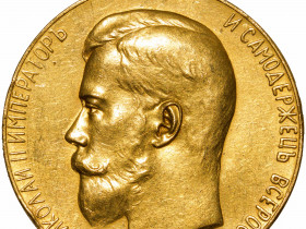 - Verdienstmedaille Nikolaus II. ohne Jahr, Gewicht: 73,91 g Feingold, Durchmesser: 51,5 mm, Erhaltung: ss-vz, kleine Randfehler (s. Bilder) - 3800 Euro inkl. Intex