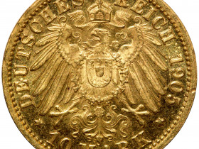 10 Mark Wilhelm II. 1905 Hausmannfälschung, prägebedingter Randfehler 6 Uhr.