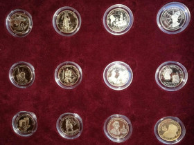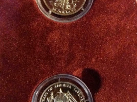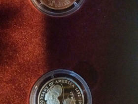 Fotografiertes Set in Topzustand unter Spot anzubieten. World Cup USA 1994 Three Coin Proof Set. 8.359 Gramm 900er Gold, dazu 26,73 Gramm 900er Silber und ein Cu Ni Half Dollar. 400 Euro inkl. DHL Paket.