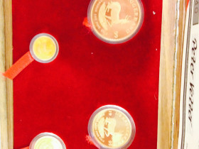 Das Set besteht aus jeweils einem Krügerrand Goldstück der Größen 1 Unze, 1/2 Unze, 1/4 Unze sowie 1/10 Unze, Au 916,67, eine Edelholzbox mit Nummerierung, sowie ein Zertifikat.