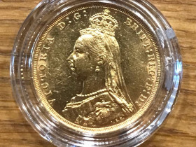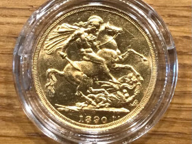 Sovereign Victoria "Jubilee Head" von 1890, 7,98 g, Prägestätte Sydney, Mzz. S, 916er Gold mit 7,32 g fein.