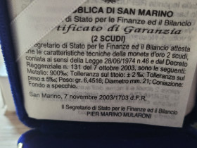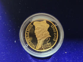 6 x 2 Scudi Gold San Marino (3 x Gothische Fibel 2004 + 3 x Nostradamus 2003) je 6,45 Gramm 900/1000, d.h. LMU-Maße für je 340 Euro