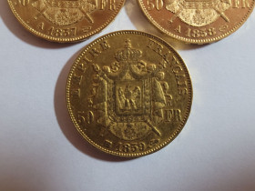 1857 A (Paris),1858 A (Paris) und 1859 BB (Straßburg) je 16,1 Gramm 900er Gold für je 950 Euro1x 50 Franken Liechtenstein 1988 mit 10 Gramm 900er Gold für 550 Euro