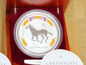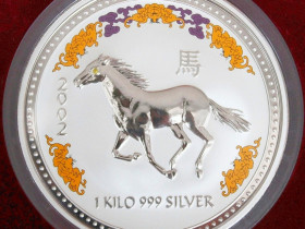 1 KILO Lunar 1 Silber - 2002 Year of the Horse mit Diamond Eye, Box, Zertifikat Nr. 796 von 883 St.