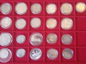 Anzahl Gewicht (Stück) Silbergehalt Feingewicht (Ges.) Half Dollar 1946 1 12,5 900 11,25 Medio Balboa 1953 1 12,5 900 11,25 UN Balboa 1947 1 26,73 900 24,057 50 Schilling 1964 1 20 900 18 One Florin 1927 1 11,28 925 10,434 5 Pesos Cuba 1981-1982 4 12 999 47,952 5 Reichsmark - Garnisionkirche Datum 2 13,88 900 24,984 5 Reichsmark - Hindenburg 1 13,88 900 12,492 2 Reichsmark - Garnisionkirche Datum 2 8 625 10 5 Pesos Cuba 1993 - PP 1 15 999 14,985 5 Won 2000 -Mountbatten - PP 1 15 999 14,985 Drei Mark - Der König rief - 1913 2 16,67 900 30,006 Zwei Mark 1901-1904 3 11,11 900 29,997 1 Mark KR 3 5,56 900 15,012 1/2 Mark KR 3 2,78 900 7,506 10 DM 2001 - PP 1 15,5 925 14,3375 10 Pesos Cuba 1990 -PP 6 28 925 155,4 10 Pesos Cuba 1994 - Flugzeuge - PP - Farbe 2 20 999 39,96 100 PTAS Franco 1966 4 19,1 800 61,12 553,7 Gramm 17,8 Oz Nur zusammen für 360 EURO zzgl. DHL