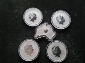 jeweils 5 x 1oz AG/pro Satz. Alle Münzen befinden sich in ungeöffneten Originalkapseln.