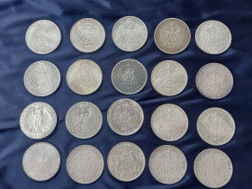 1x 3 Mark Kaiserreich Hansestadt Hamburg 1909 J vz 182x 5 Mark Kaiserreich Preußen 1902/1907 nicht superschön aber Silber je 25
