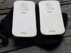 *Zwei 250g Sargbarren von Degussa für je 250,-