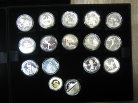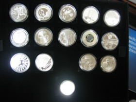 Insgesamt 47 Silbermünzen in Proof aus aller Welt.