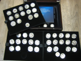 Insgesamt 47 Silbermünzen in Proof aus aller Welt.
