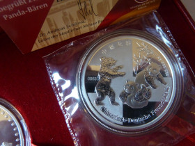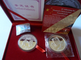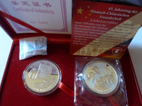 (bestehend aus 2 x 1 Unze Set 45. Jahrestag der deutsch-chin. Freundschaft in Etui mit COA sowie1 x 1 Unze NXZ XIBEI Bearing Group (Kapsel an der Seite leicht beschädigt) in Etui)
