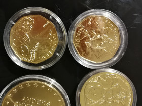 Biete ein bunt gemischtes Lot vergoldeter Euro-Münzen (zusammen ein Nominal von 175€):