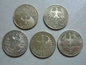 4. BRD Die ersten 5 x 5 DM Gedenkmünzen