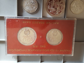 und 2 Silbermünzen 50 Forint und 100 Forint 25 Jahre Befreiung Ungarns.....