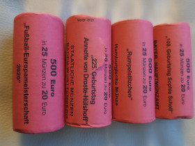 Biete 20 Euro Silbermünzen in Originalrollen zu je 25 Stück - Nennwert 500 Euro -Gesamt 2500 Euro.