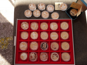 Um auf insgesamt ein Kilo Feinsilber zu kommen, habe ich noch 13 Medaillen (letzten zwei Bilder) dazu gegeben.Am liebsten würde ich gegen 5oz Libertads oder 2oz Niue Turtles tauschen.