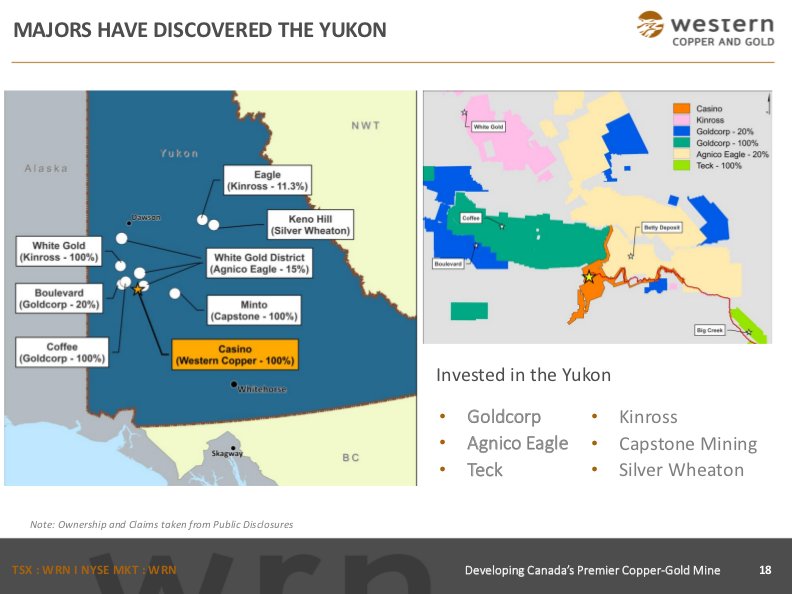 WRN ist sicherlich unterbewerted, sh. Anhang 1. Das Projekt im Yukon ist umgeben von Goldriesen,sh. Anhang 2.