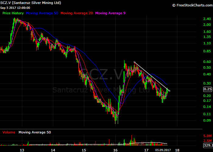 ... vll. kann man bei 21$ von 40cent träumen ... aber viel kommt da einfach auch nicht vom management .. naja werden sehen .. bin raus .. kann man sicherlich machen - für mich wenn dann eher ein tradeSantacruz Silver nicht mehr wert als 15 Cent: das sehen andere Investoren wohl auch so, heute wieder satter Abschlag.....