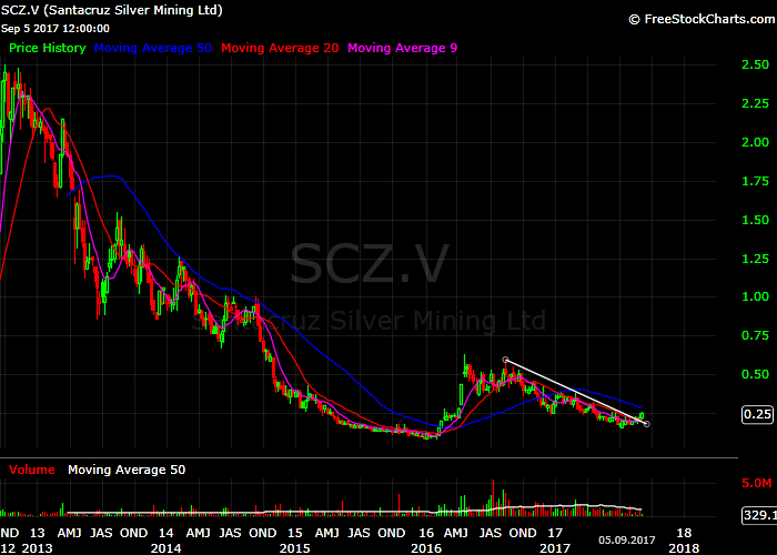 ... vll. kann man bei 21$ von 40cent träumen ... aber viel kommt da einfach auch nicht vom management .. naja werden sehen .. bin raus .. kann man sicherlich machen - für mich wenn dann eher ein tradeSantacruz Silver nicht mehr wert als 15 Cent: das sehen andere Investoren wohl auch so, heute wieder satter Abschlag.....
