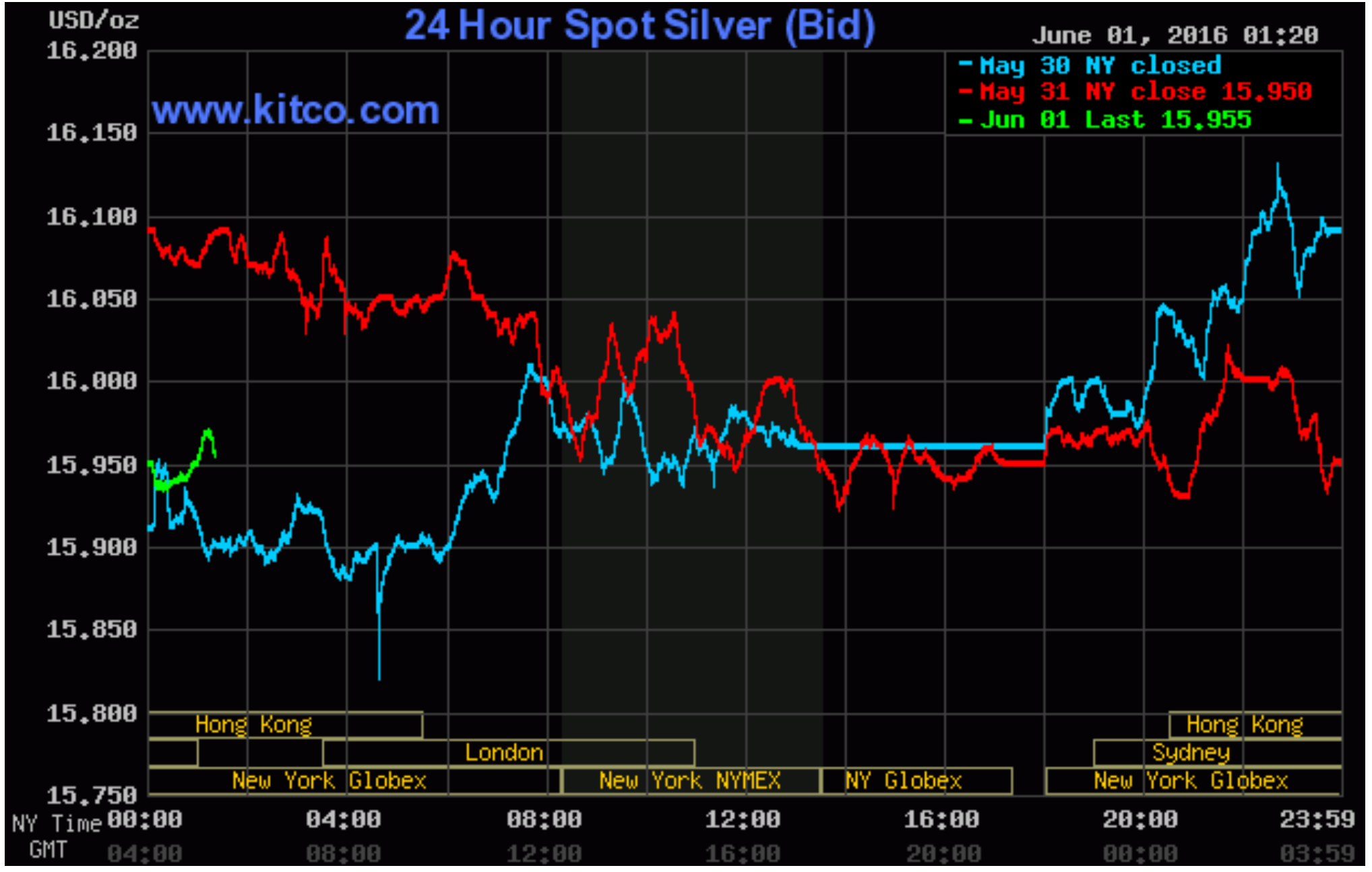 >>Welchen Kurs in US Dollar sehen wir Ende Mai 2016 am Globex Markt NY Kitco für eine Unze Papiersilber ? <<