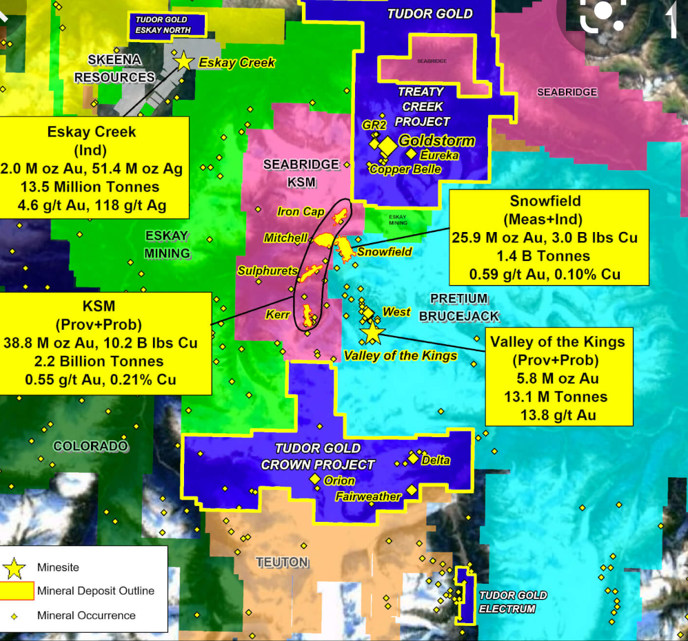 Vielleicht haben auch noch einige das Potential nicht erkannt. Wie gesagt, ich bin der Meinung, dass Tudor's Liegenschaft perfekt zu Seabridges KSM passen würde. Könnte mir vorstellen, dass es Gespräche zwischen beiden gibt...denn Tudor selbst kann mit dem Vorkommen nichts anfangen - "Mining" würde sich hier, auf Grund der Größe und der niedrigen Goldgehalte, nicht lohnen.