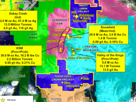 Vielleicht haben auch noch einige das Potential nicht erkannt. Wie gesagt, ich bin der Meinung, dass Tudor's Liegenschaft perfekt zu Seabridges KSM passen würde. Könnte mir vorstellen, dass es Gespräche zwischen beiden gibt...denn Tudor selbst kann mit dem Vorkommen nichts anfangen - "Mining" würde sich hier, auf Grund der Größe und der niedrigen Goldgehalte, nicht lohnen.