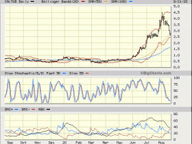 "Aber Bäume wachsen nicht in den Himmel." Nachdem TUD auf 4,16 C$ gestiegen war, bekam ich weiche Knie und das untrügliche Grummeln im Bauch und verkaufte entgegen ursprünglicher Absicht genau 1/3 des Bestandes mit immensem Gewinn.
