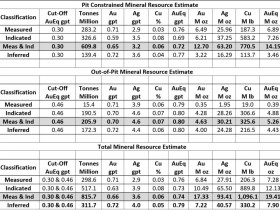 --- Für die Lagerstätten Goldstorm und Copper Belle werden insgesamt 19,41 Millionen Unzen an gemessenen und angezeigten Goldäquivalenten mit einem durchschnittlichen Gehalt von 0,74 Gramm pro Tonne Goldäquivalent geschätzt.