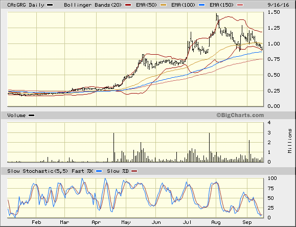 Da ich bislang noch nicht in GRG investiert war, bin ich heute mit einer ersten kleinen Position bei 0,92 C$ eingestiegen. Die Gemengelage bei den EMs ist momentan etwas undurchsichtig. Von weiter fallend bis stark steigend ist alles möglich und ich möchte ungern bei dieser Aktie an der Seitenlinie stehen.