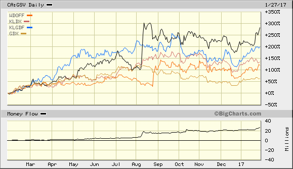 Habe WDO mal YTD verglichen zu meinen schweren Goldaktien Kirkland, Klondex sowie dem GDX.