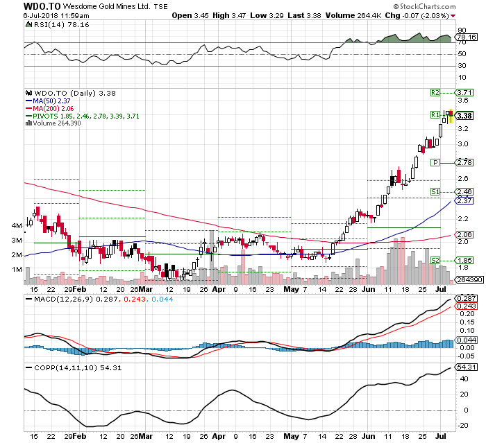 The share price of Wesdome Gold Mines Ltd has doubled over the summer due to strong production results in Q1 and Q2 and the increased guidance for the H2 of 2018. It has also a result of the very promising exploration drilling results that have been released at Kiena Complex as well as Eagle River Complex. Several equity analysts have acknowledged these improved fundamentals and raised their outlook and price targets for the firm. This price appreciation could continue if the updated resource report released in late 2018 exceed investors expectations. And if the price of gold returns to its summer highs, the price could double again...." ;)
