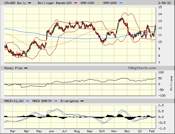 Geschafft, momentan 13,15 C$. Das ATH betrug 14,85 C$ im Aug 2020.