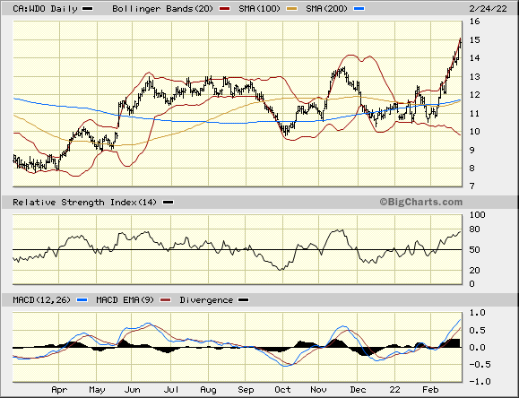 Geschafft, momentan 13,15 C$. Das ATH betrug 14,85 C$ im Aug 2020.