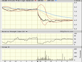Gestern gewaltige Umsätze : TSX 6,6 Mio und OTC 2,3 Mio. Über die weitere Kursentwicklung kann spekuliert werden.... Noch ein Blick auf den 5 min Chart von gestern mit Abflachung des Verkaufsdrucks.